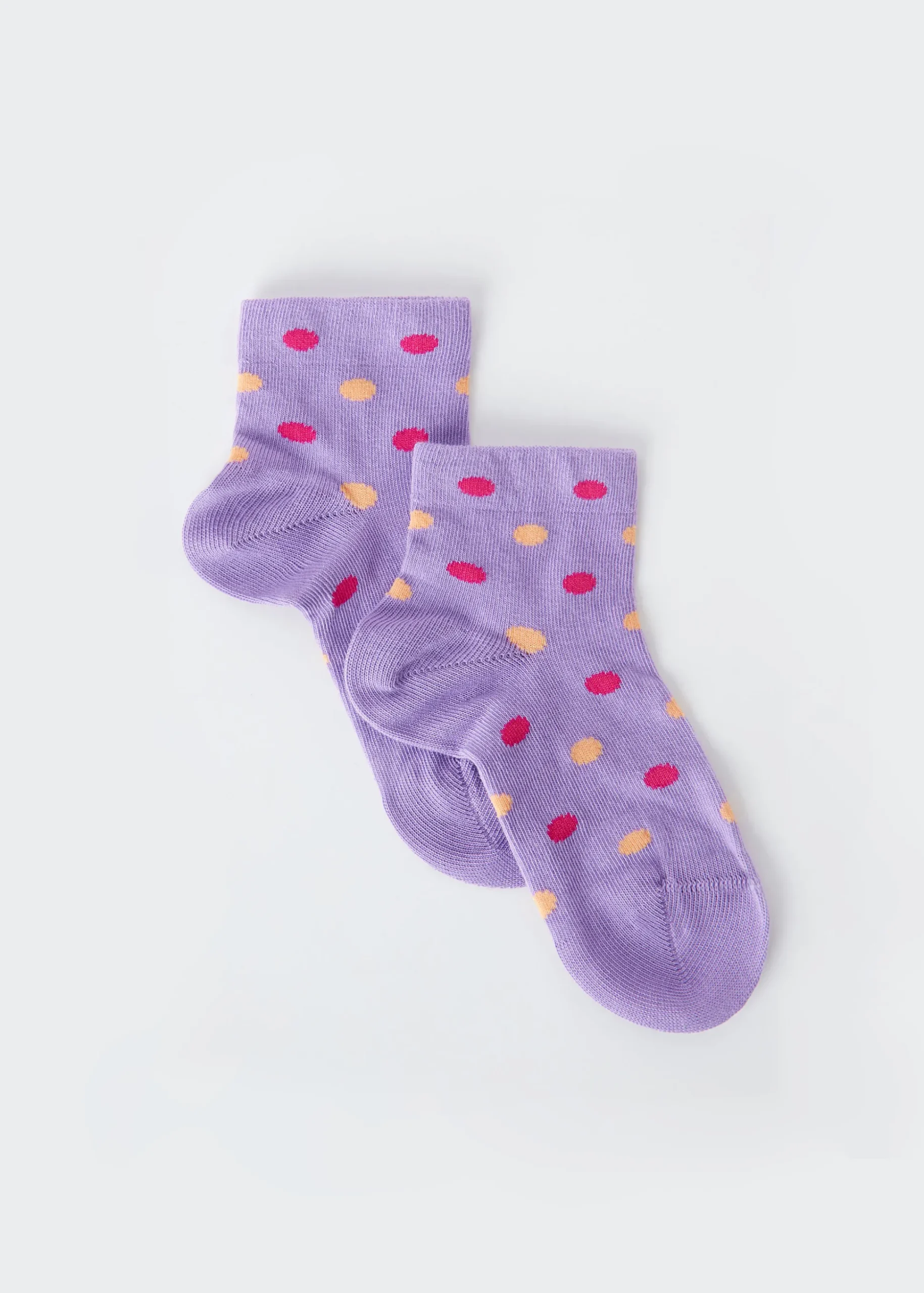 Kids’ Short Socks In Soft Cotton, Featuring A Colourful Polka Dots Pattern.
