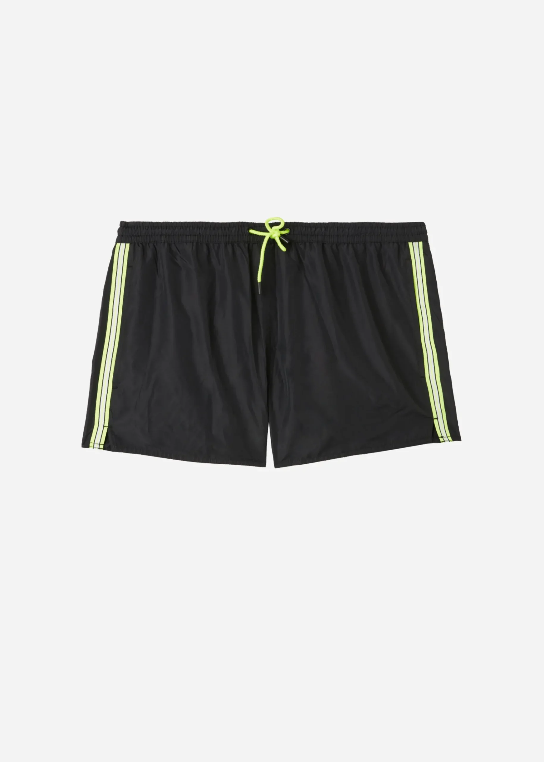 Men’s Boxer Swim Shorts With Elastic Waistband And Contrasting-Colour Interior. Coloured Drawcord With Contrasting Tip. Side Pockets With Inner Mesh. The Style Mimics That Of Running Wear And Is Defined By Multi-Coloured Stripe Side Band Details. Soft And Comfortable Quick-Dry Fabric Made From An Eco-Sustainable Fibre Obtained From Regenerated Raw Materials With A Low Environmental Impact.